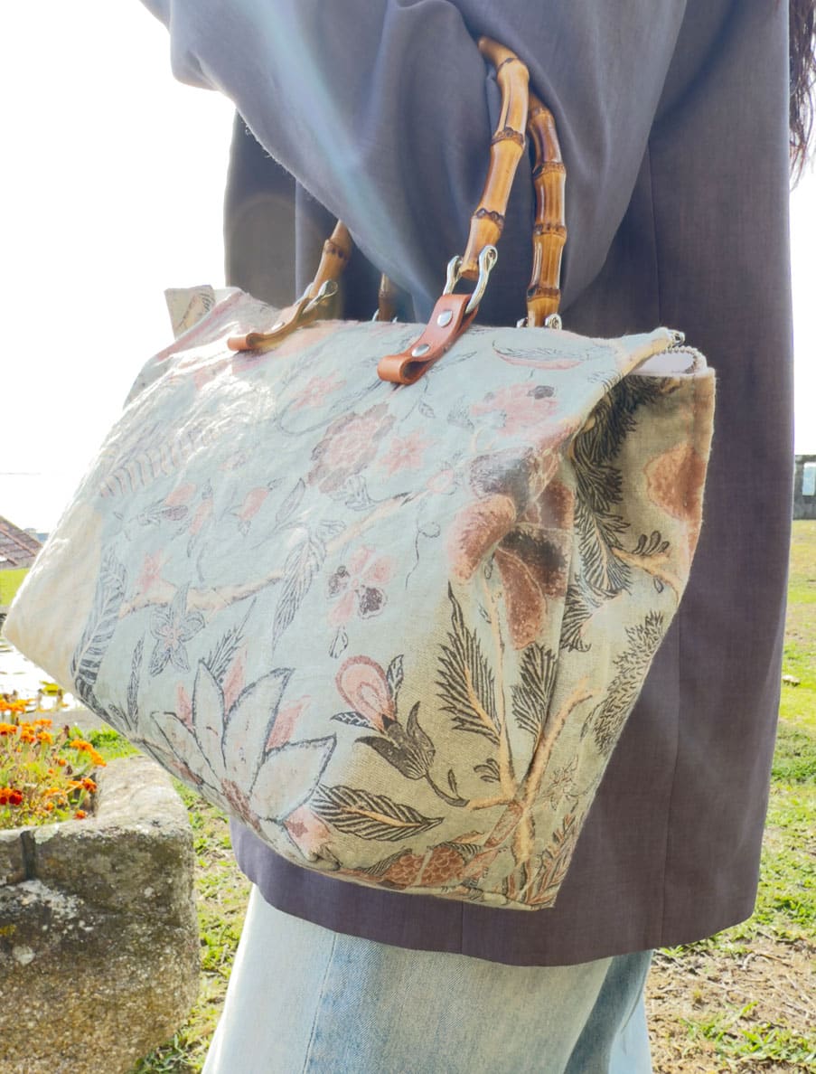 Tela italiana de primerísima calidad. Este bolso, con un patrón tipo “bolso de viaje”, tiene una capacidad asombrosa. Es un bolso para cualquier ocasión. Cuenta con bolsillo en el interior.