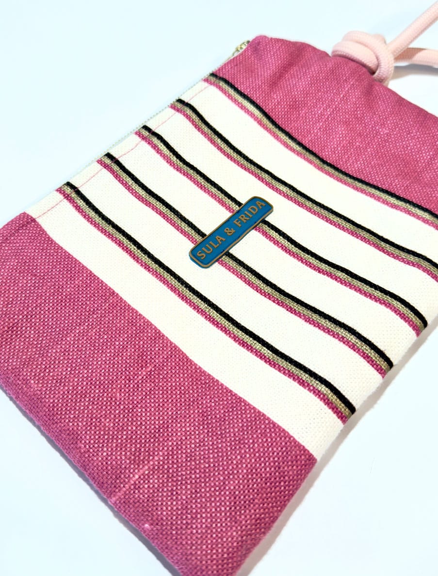 Tela única de lino. Colores vivos y combinables. Cuenta con bolsillo interior en la misma tela.