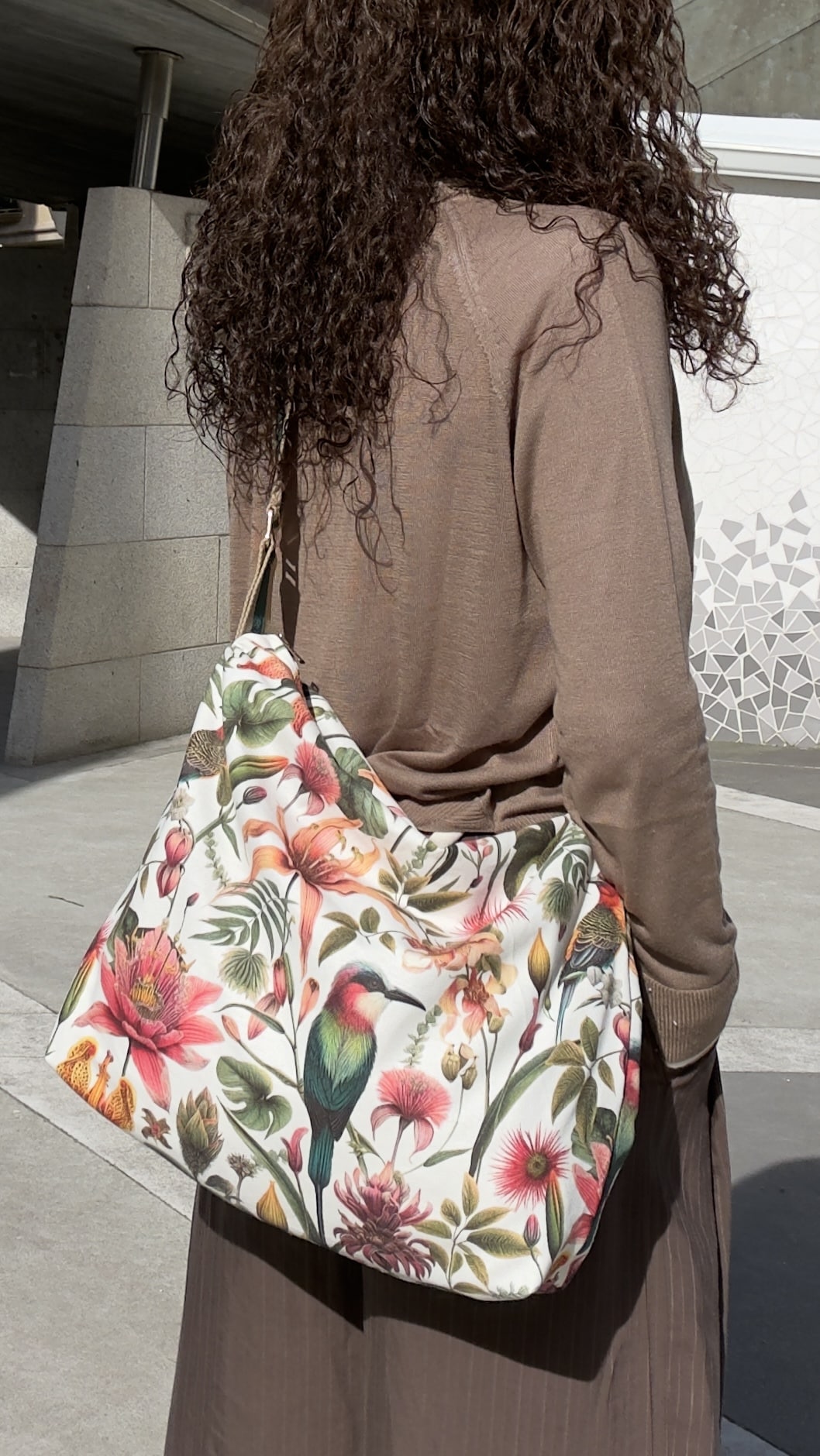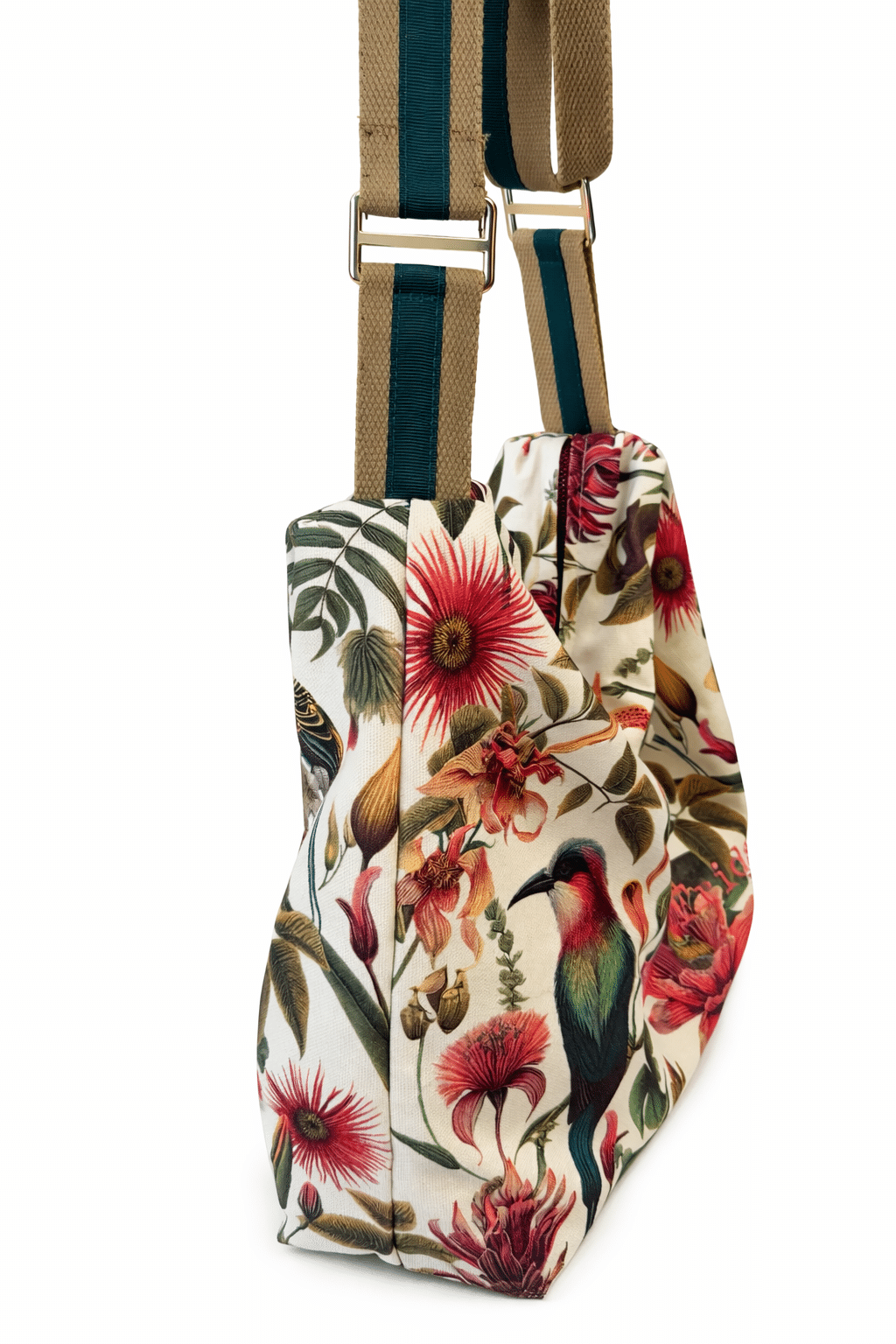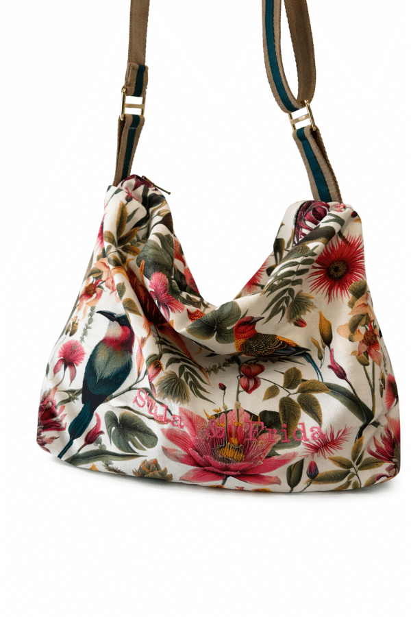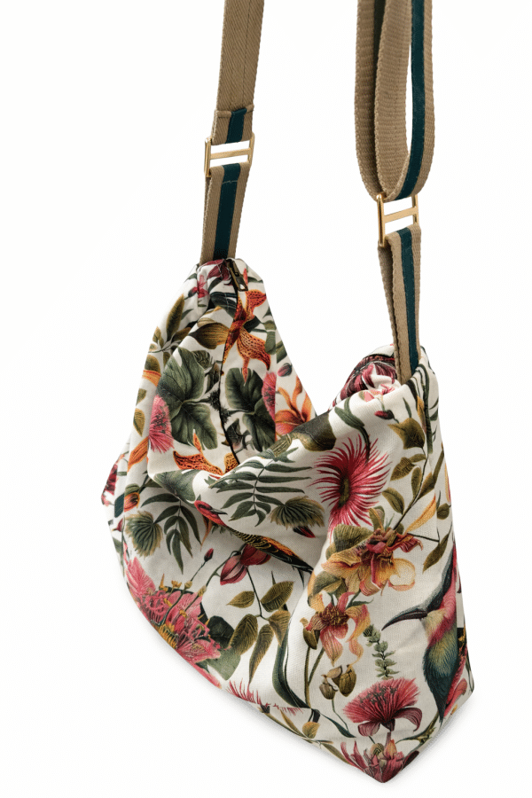 Bolso bandolera, excelente tela de tapicería estampada. Correa combinada de algodón y el propio estampado del bolso. Regulable en largura para una adaptación perfecta!!