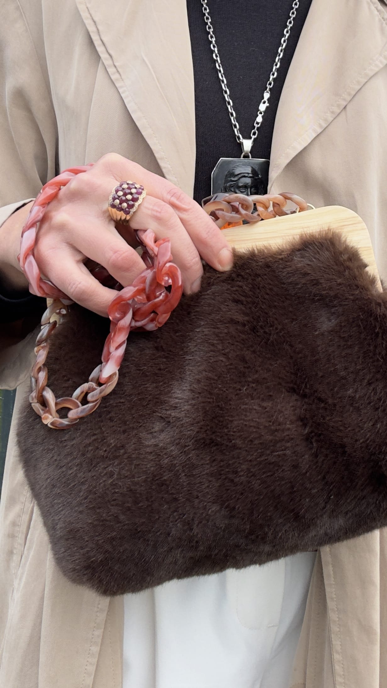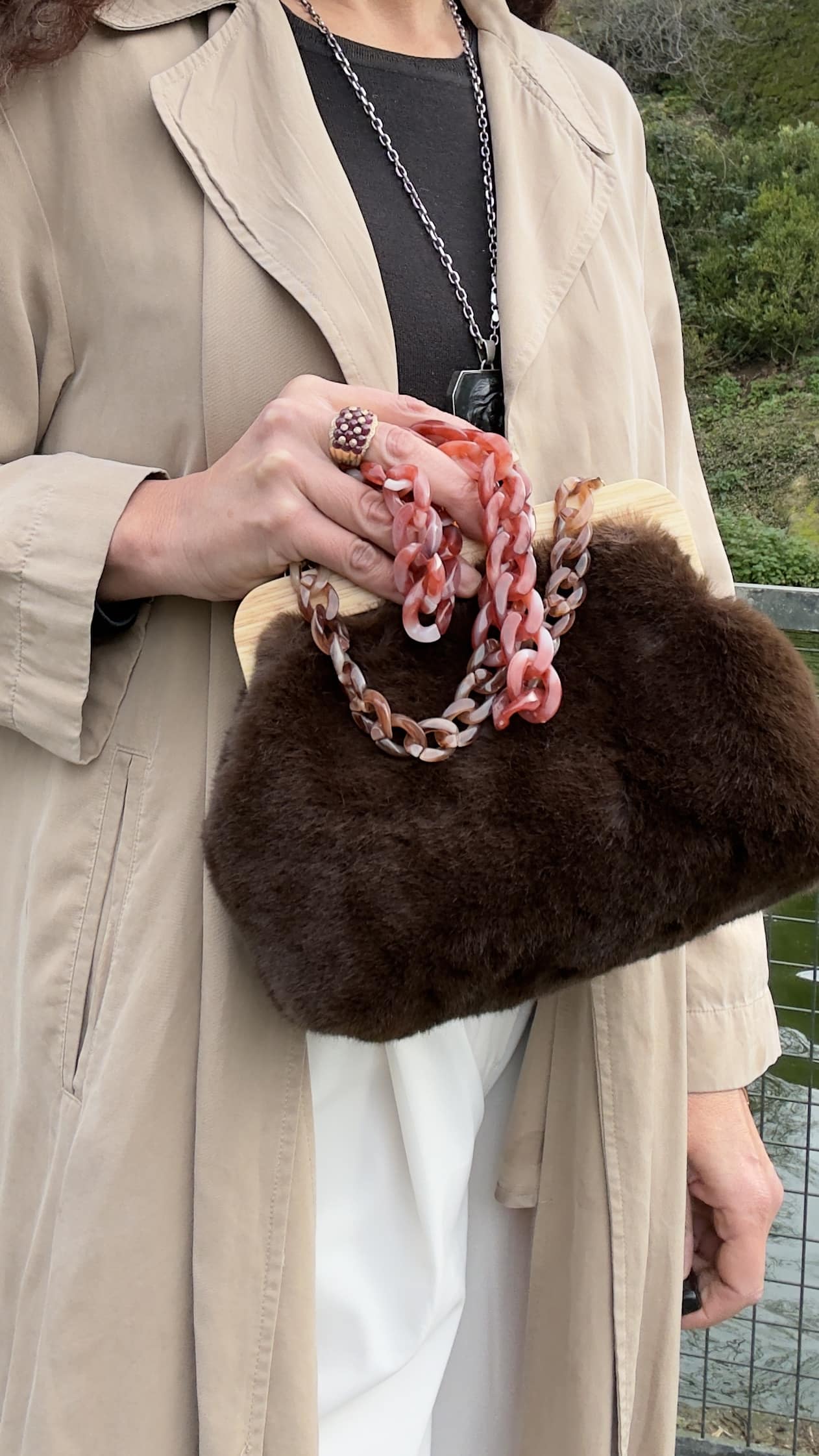 Pequeño bolso, pero de gran capacidad. Confeccionado con una tela de pelillo super suave y amoroso.